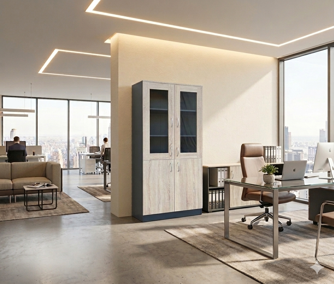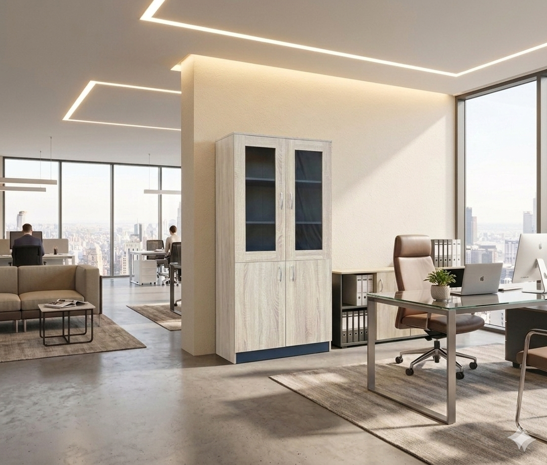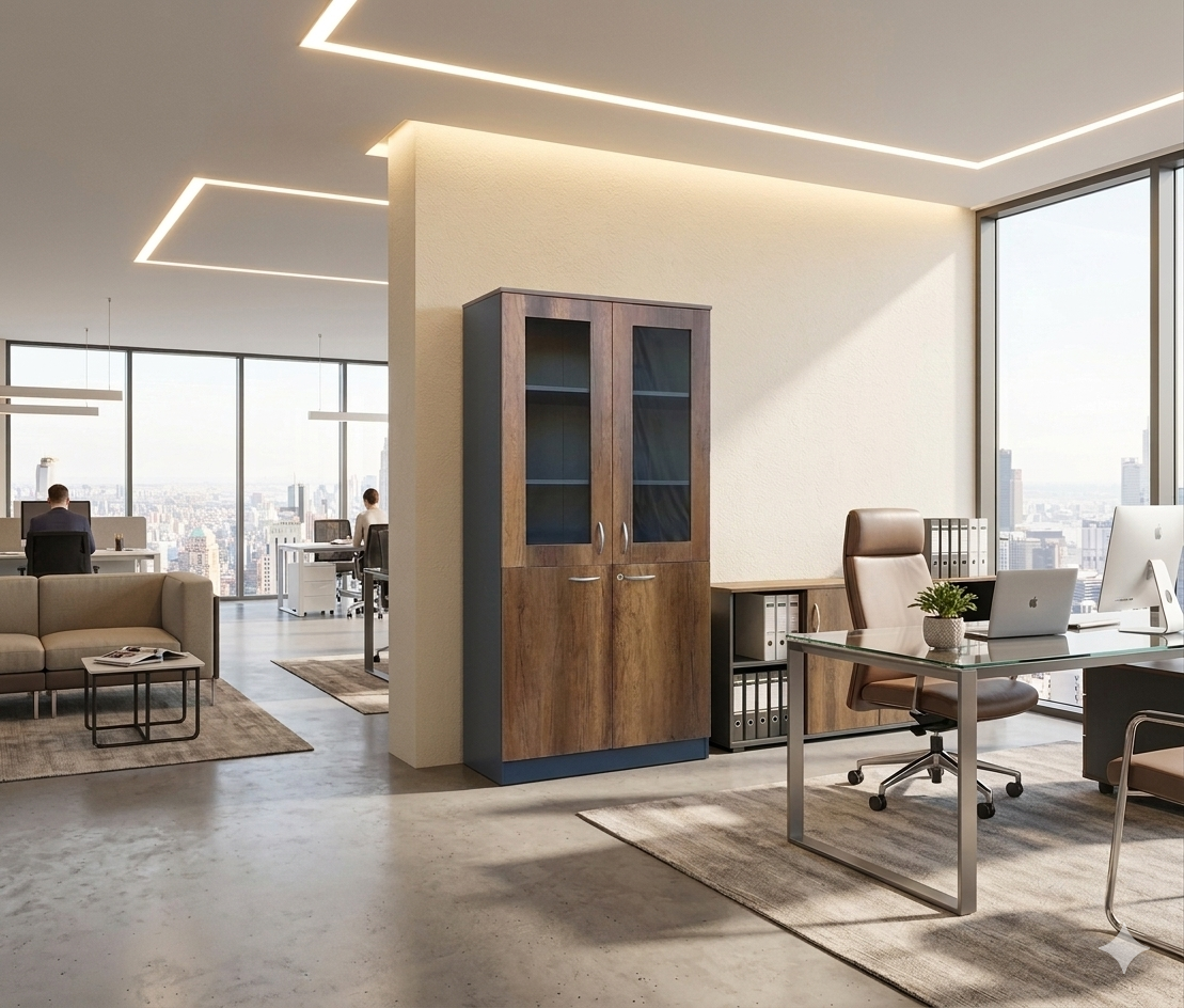 L’armoire de bureau semi-vitrée (modèle 050) allie fonctionnalité et design contemporain pour une organisation optimale de vos espaces de travail. Elle est conçue pour offrir à la fois une surface d’exposition élégante et un espace de rangement sécurisé.